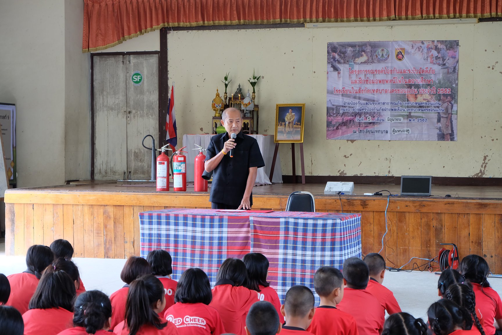โรงเรียนเทศบาลคุ้มหนองคูนำนักเรียนเข้าฝึกอบรมบรรเทาสาธารณภัยภายในสถาศึกษาและฝึกอพยพในกรณีฉุกเฉินประจำปี 2562