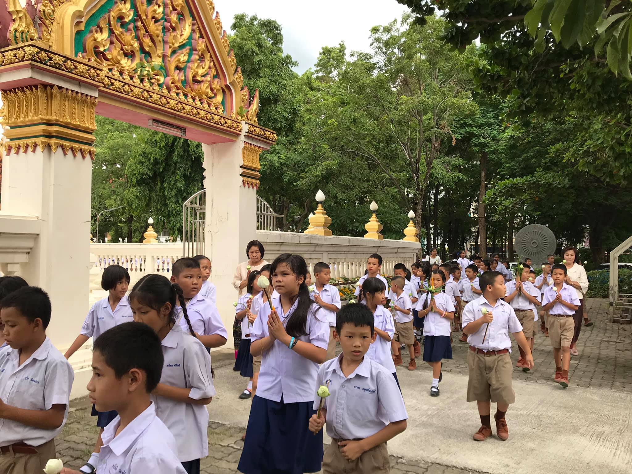 โรงเรียนเทศบาลคุ้มหนองคูนำนักเรียน คณะครู ถวายเทียน ผ้าอาบน้ำฝนในวันสำคัญทางพระพุทธศาสานาวันเข้าพรรษา