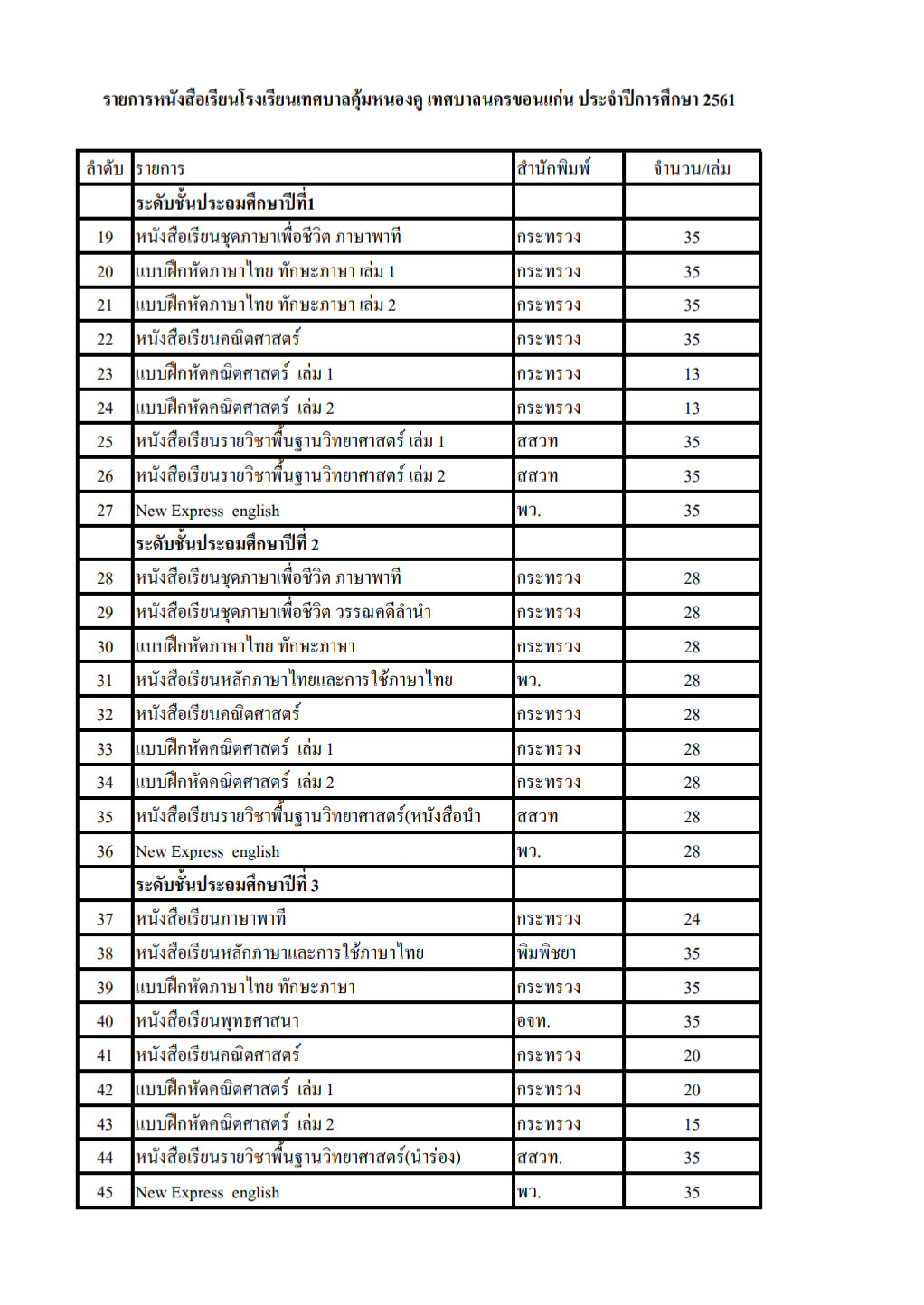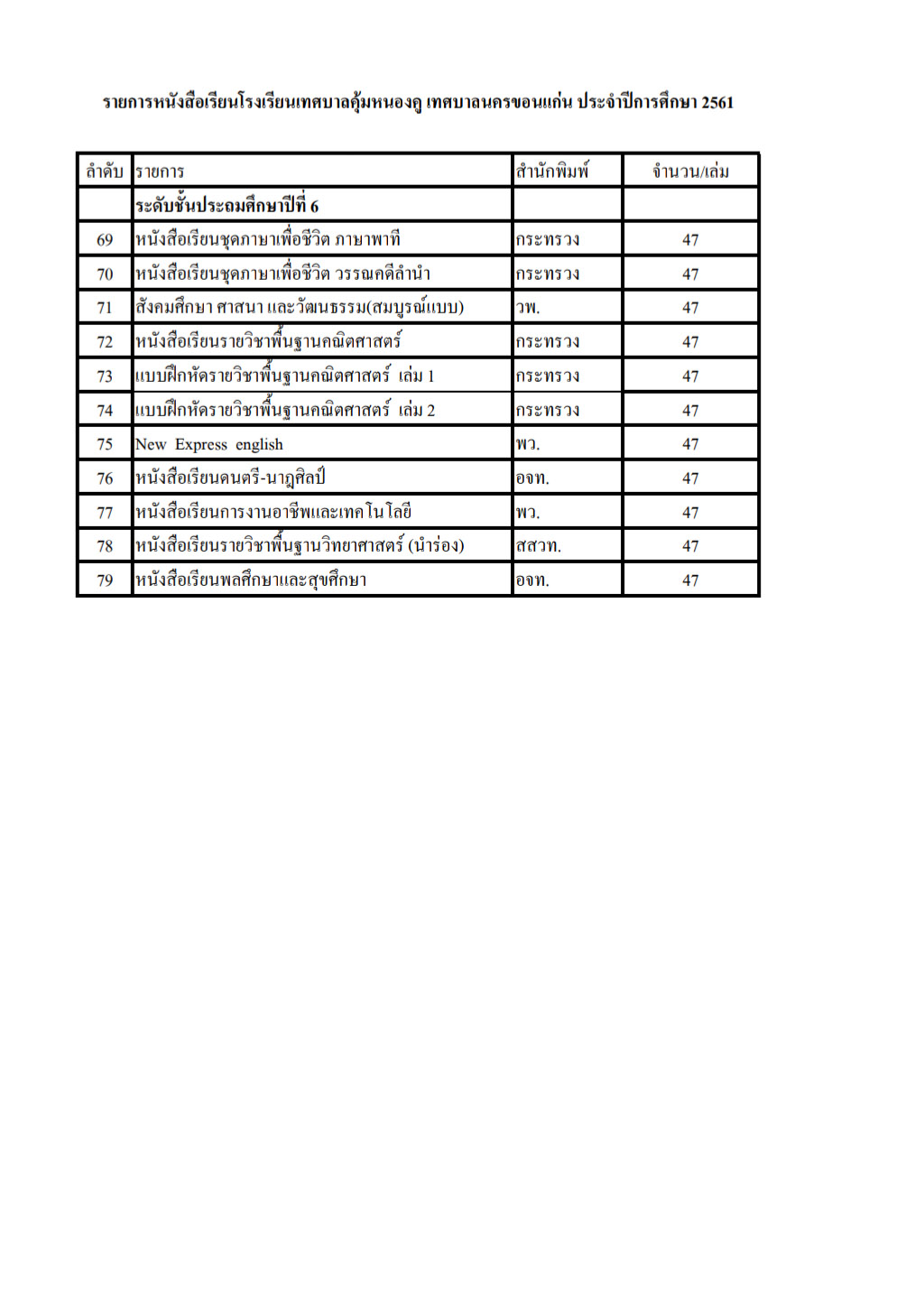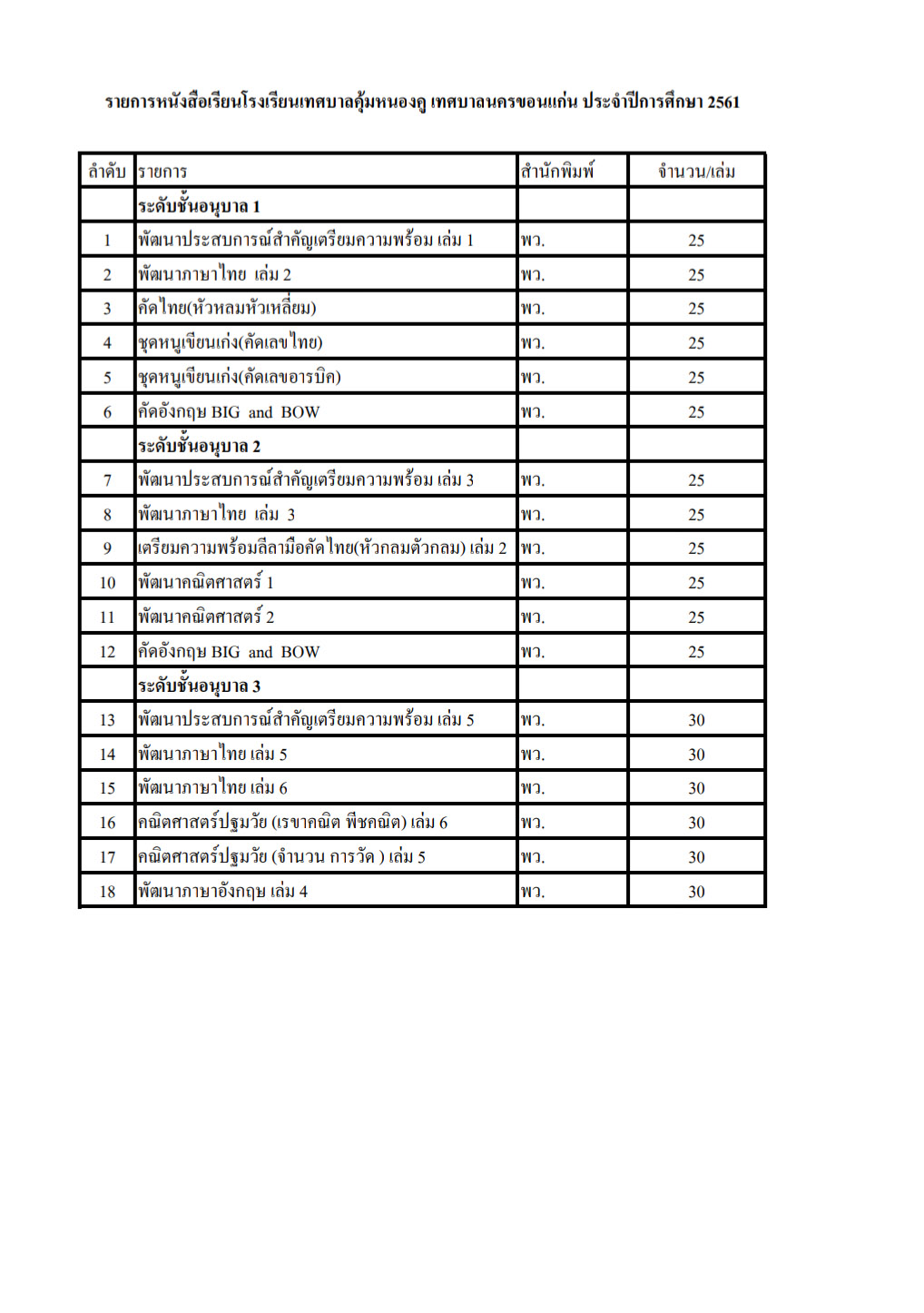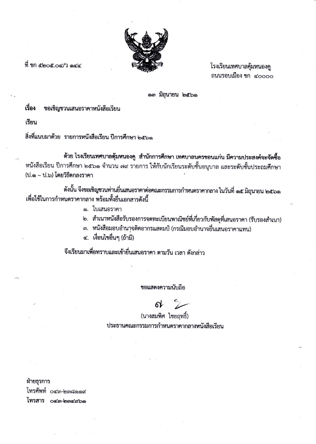 ประกาศ เชิญชวนเสนอราคาหนังสือประจำปี 2561