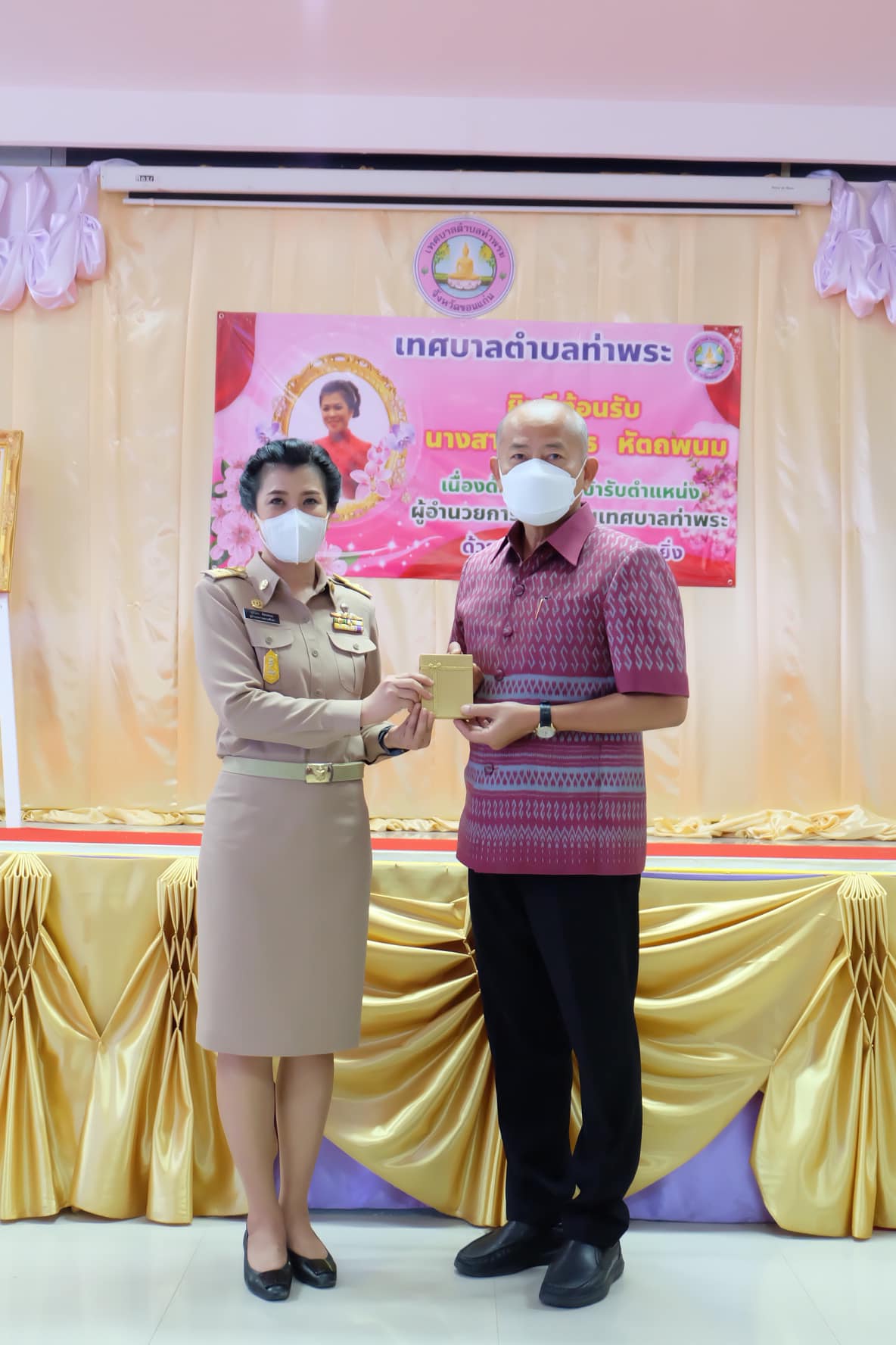 วันจันทร์ที่ 7 มีนาคม 2565 เวลา 10.00 น. ณ ห้องประชุมเทศบาลตำบลท่าพระ ได้รับเกียรติจากนายมนตรี สิงหปุณณภัทร รองนายกเทศมนตรีเทศบาลนครขอนแก่น นายมานพ ช่องตะคุ ผู้อำนวยการสำนักการศึกษา เทศบาลนครขอนแก่น พร้อมตัวแทนไทสิกขา คณะผู้บริหารสถานศึกษา ในสังกัดเทศบาลนครขอนแก่น คณะครู และผู้มีเกียรติ ร่วมแสดงความยินดีกับนางสาวชุตินธร หัตถพนม ไปดำรงตำแหน่ง ผู้อำนวยการโรงเรียนเทศบาลท่าพระ โดยได้รับการต้อนรับจาก นายพิสุทธิ์ อนุตรอังกูร นายกเทศมนตรีตำบลท่าพระ พร้อมคณะรองนายกเทศมนตรี, ปลัดเทศบาล,ผู้อำนวยการกองการศึกษา,หัวหน้าส่วนราชการ และคณะครูจากโรงเรียนเทศบาลท่าพระ