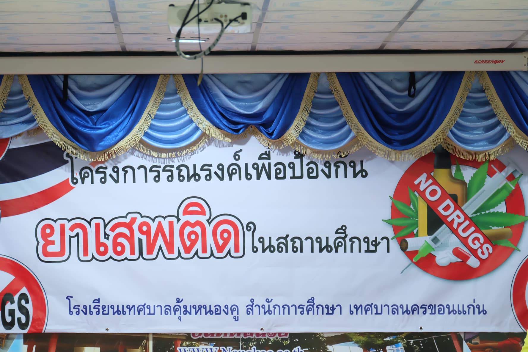 โรงเรียนเทศบาลคุ้มหนองคูจัดอบรมโครงการอบรมรณรงค์เพื่อป้องกันยาเสพติดในสถานศึกษาประจำปี2565 ณ ห้องประชุมโรงเรียนเทศบาลคุ้มหนองคู โดยวิทยากรครู D.A.R.E. จากสถาณีตำรวจภูภรภาค 4 จังหวัดขอนแก่น วิทยากรผู้ให้ความรู้นำโดย ด.ต. นรงค์ สุขเจริญ ครูวิทยากรให้ความรู้เกี่ยวกับพิษภัยและโทษของยาเสพติดให้กับบรรดานักเรียนโรงเรียนเทศบาลคุ้มหนองคู เพื่อให้นักเรียนเกิดความตระหนักถึงโทษและอันตรายของยาเสพติดในแต่ละประเภท ในการอบรมได้มีผู้บริหารสถานศึกษา นางสาวชุตินธร หัตถพนม ผู้อำนวยการสถานศึกษาโรงเรียนเทศบาลคุ้มหนองคู ให้เกียรติในการกล่าวเปิดการอบรมในครั้งนี้ ทั้งนี้การจัดอบรมรณรงค์เพื่อป้องกันยาเสพติดในสถานศึกษาทางโรงเรียนเทศบาลคุ้มหนองคูได้จัดขึ้นเป็นประจำทุกปี