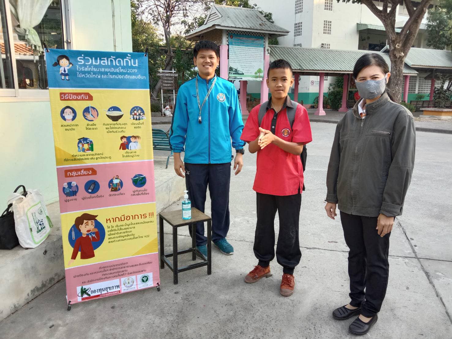โรงเรียนเทศบาลคุ้มหนองคูร่วมสกัดกั้นไวรัสโควิด-19 ด้วยการล้างมือด้วยเจล และวัดไข้ก่อนเข้าโรงเรียน
