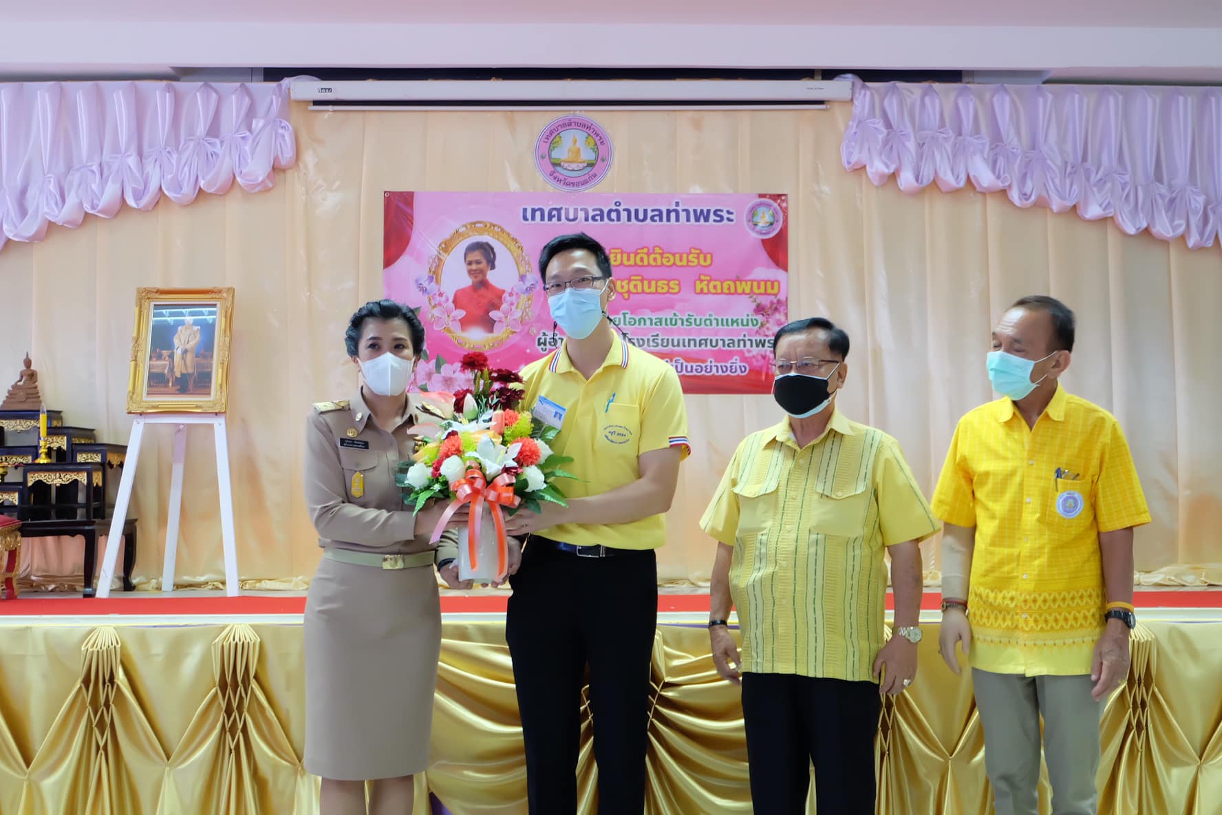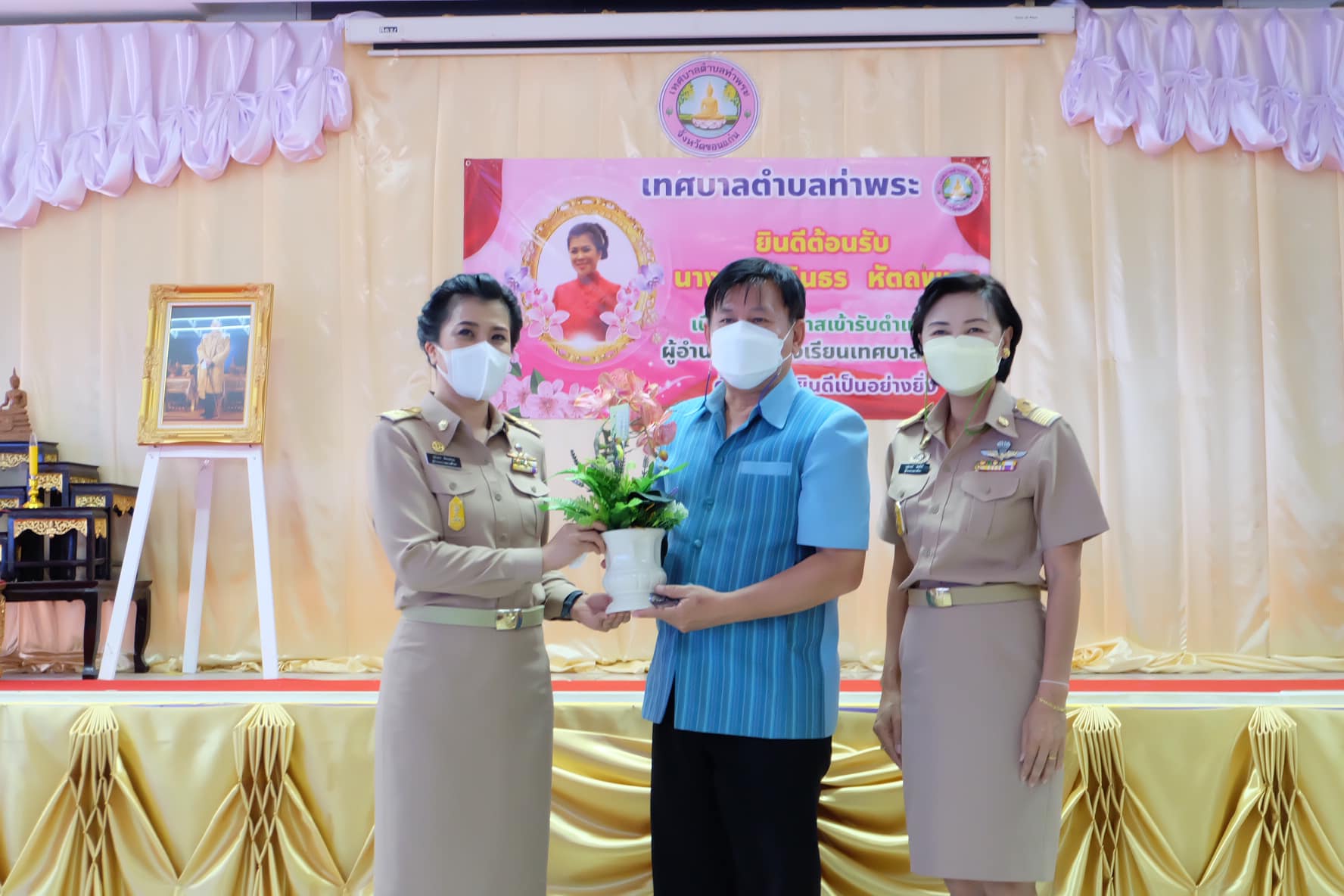 วันจันทร์ที่ 7 มีนาคม 2565 เวลา 10.00 น. ณ ห้องประชุมเทศบาลตำบลท่าพระ ได้รับเกียรติจากนายมนตรี สิงหปุณณภัทร รองนายกเทศมนตรีเทศบาลนครขอนแก่น นายมานพ ช่องตะคุ ผู้อำนวยการสำนักการศึกษา เทศบาลนครขอนแก่น พร้อมตัวแทนไทสิกขา คณะผู้บริหารสถานศึกษา ในสังกัดเทศบาลนครขอนแก่น คณะครู และผู้มีเกียรติ ร่วมแสดงความยินดีกับนางสาวชุตินธร หัตถพนม ไปดำรงตำแหน่ง ผู้อำนวยการโรงเรียนเทศบาลท่าพระ โดยได้รับการต้อนรับจาก นายพิสุทธิ์ อนุตรอังกูร นายกเทศมนตรีตำบลท่าพระ พร้อมคณะรองนายกเทศมนตรี, ปลัดเทศบาล,ผู้อำนวยการกองการศึกษา,หัวหน้าส่วนราชการ และคณะครูจากโรงเรียนเทศบาลท่าพระ