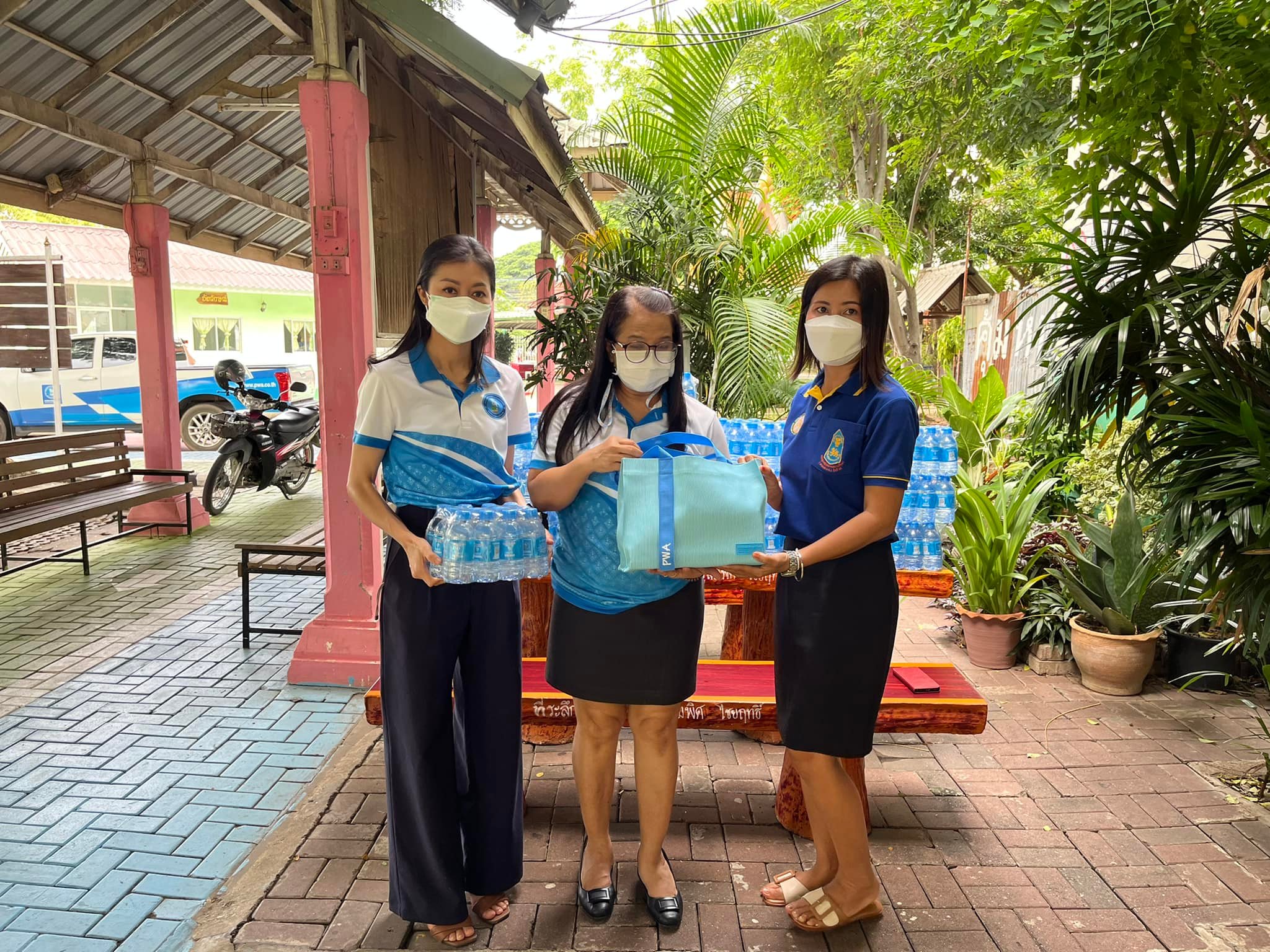 • มอบของที่ระลึกให้กับโรงเรียน มอบกระเป๋าและหมวกสัญลักษณ์ ฮีโร่น้อยอาสาพิทักษ์น้ำให้กับคณะนักเรียน