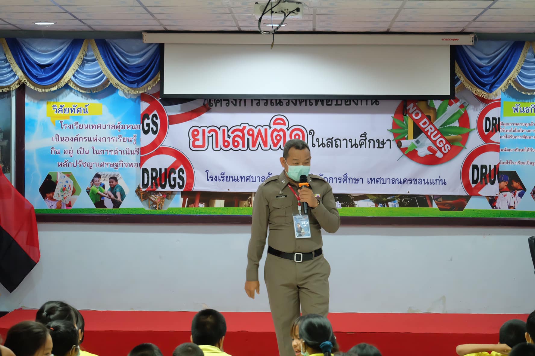 โรงเรียนเทศบาลคุ้มหนองคูจัดอบรมโครงการอบรมรณรงค์เพื่อป้องกันยาเสพติดในสถานศึกษาประจำปี2565 ณ ห้องประชุมโรงเรียนเทศบาลคุ้มหนองคู โดยวิทยากรครู D.A.R.E. จากสถาณีตำรวจภูภรภาค 4 จังหวัดขอนแก่น วิทยากรผู้ให้ความรู้นำโดย ด.ต. นรงค์  สุขเจริญ ครูวิทยากรให้ความรู้เกี่ยวกับพิษภัยและโทษของยาเสพติดให้กับบรรดานักเรียนโรงเรียนเทศบาลคุ้มหนองคู เพื่อให้นักเรียนเกิดความตระหนักถึงโทษและอันตรายของยาเสพติดในแต่ละประเภท ในการอบรมได้มีผู้บริหารสถานศึกษา นางสาวชุตินธร หัตถพนม ผู้อำนวยการสถานศึกษาโรงเรียนเทศบาลคุ้มหนองคู ให้เกียรติในการกล่าวเปิดการอบรมในครั้งนี้ ทั้งนี้การจัดอบรมรณรงค์เพื่อป้องกันยาเสพติดในสถานศึกษาทางโรงเรียนเทศบาลคุ้มหนองคูได้จัดขึ้นเป็นประจำทุกปี