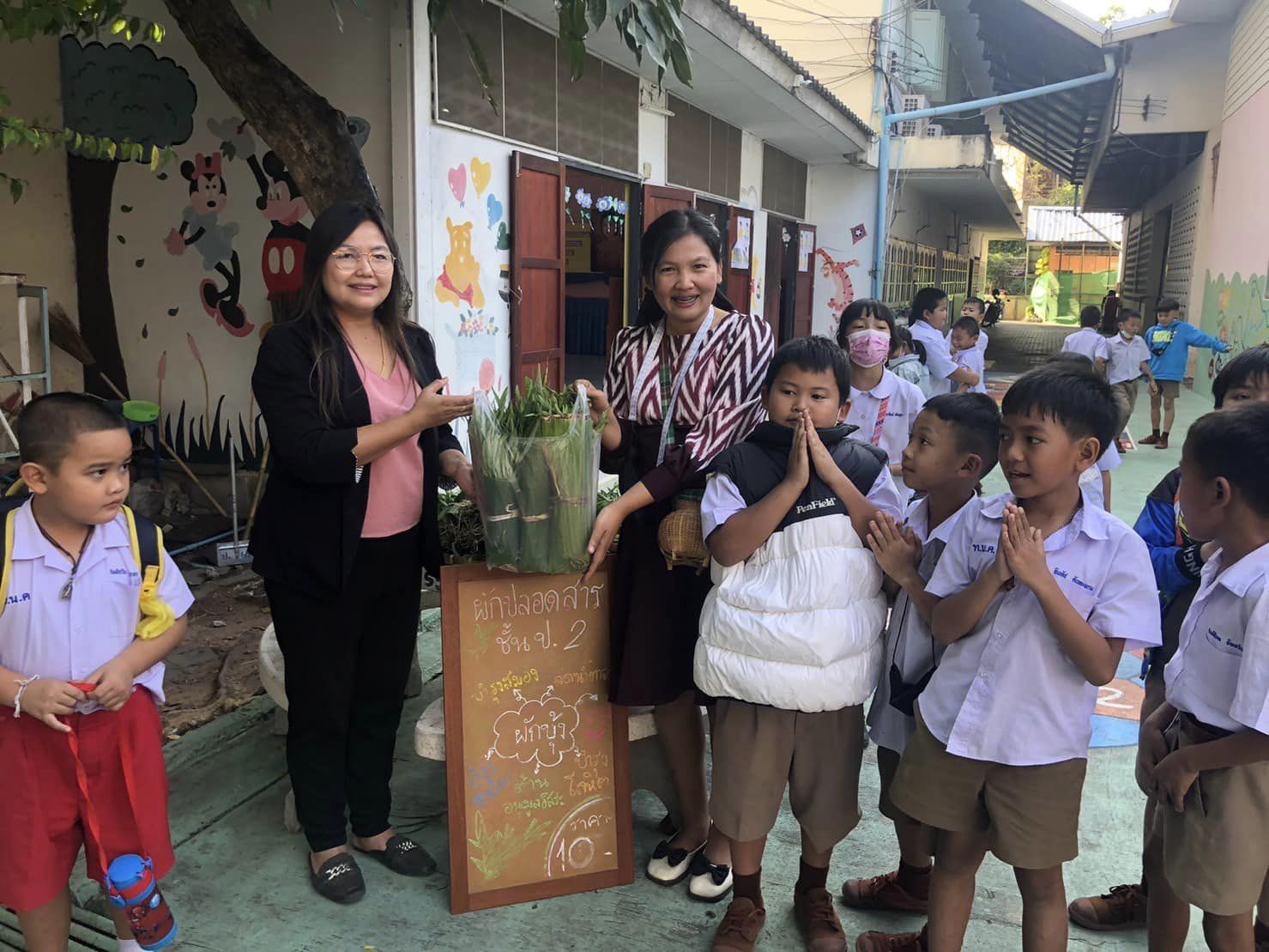 นักเรียนชั้นประถมศึกษาปีที่ 2 ได้เรียนรู้วิชาบูรณาการเรื่อง ผักปลอดสารอาหารปลอดภัย ได้มีการเก็บผลผลิต และนำไปจำหน่ายให้กับผู้ปกครอง ชุมชน