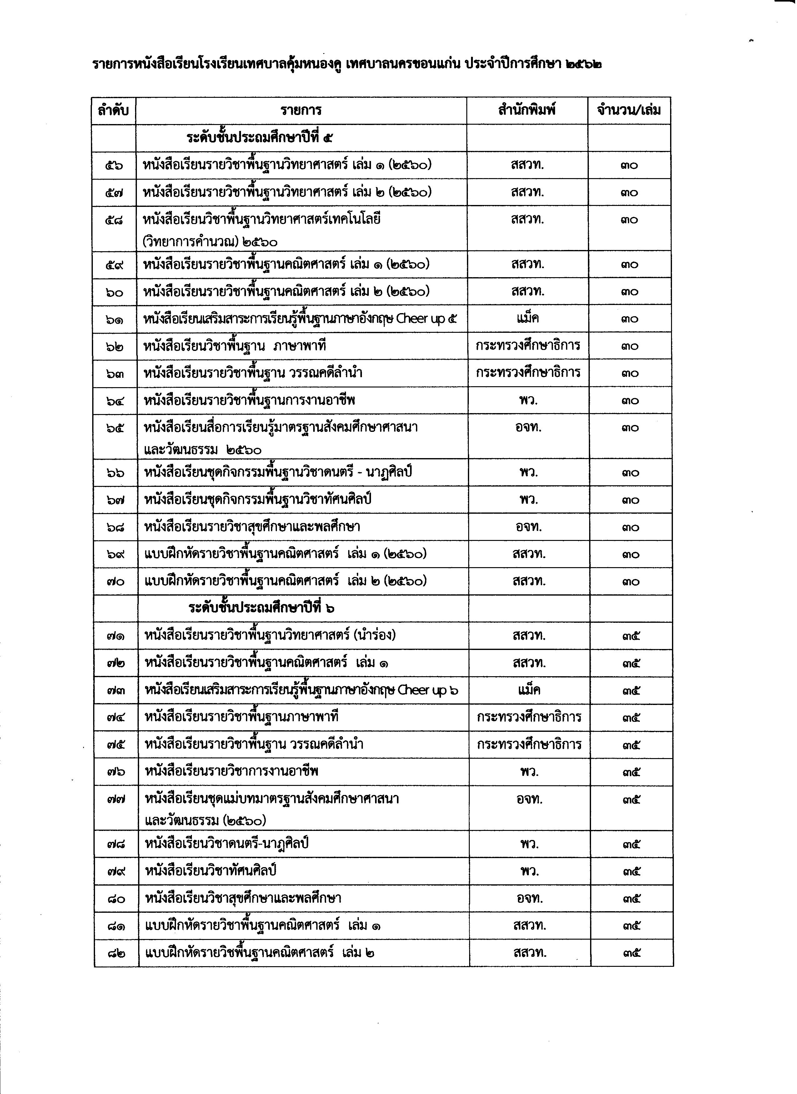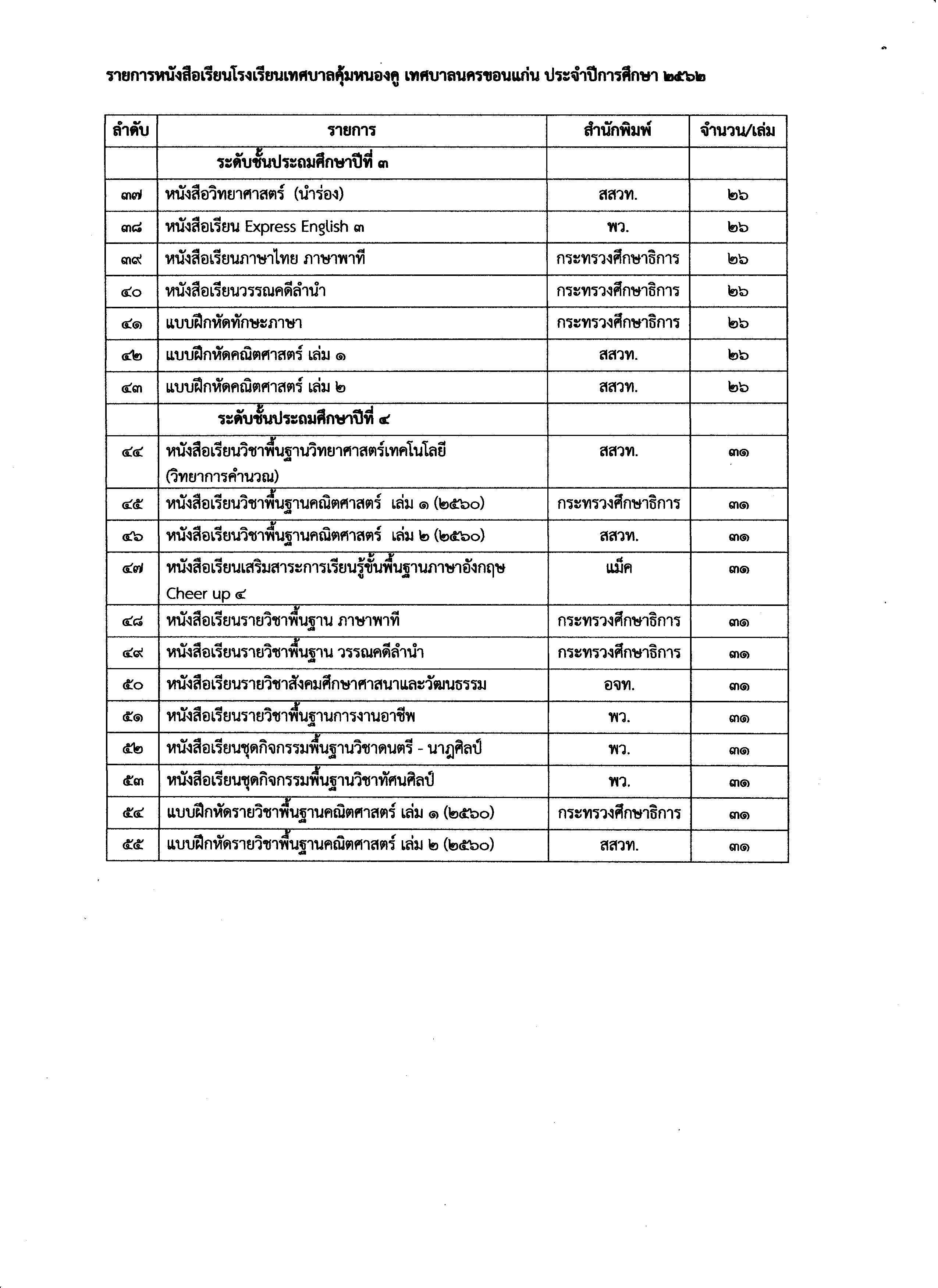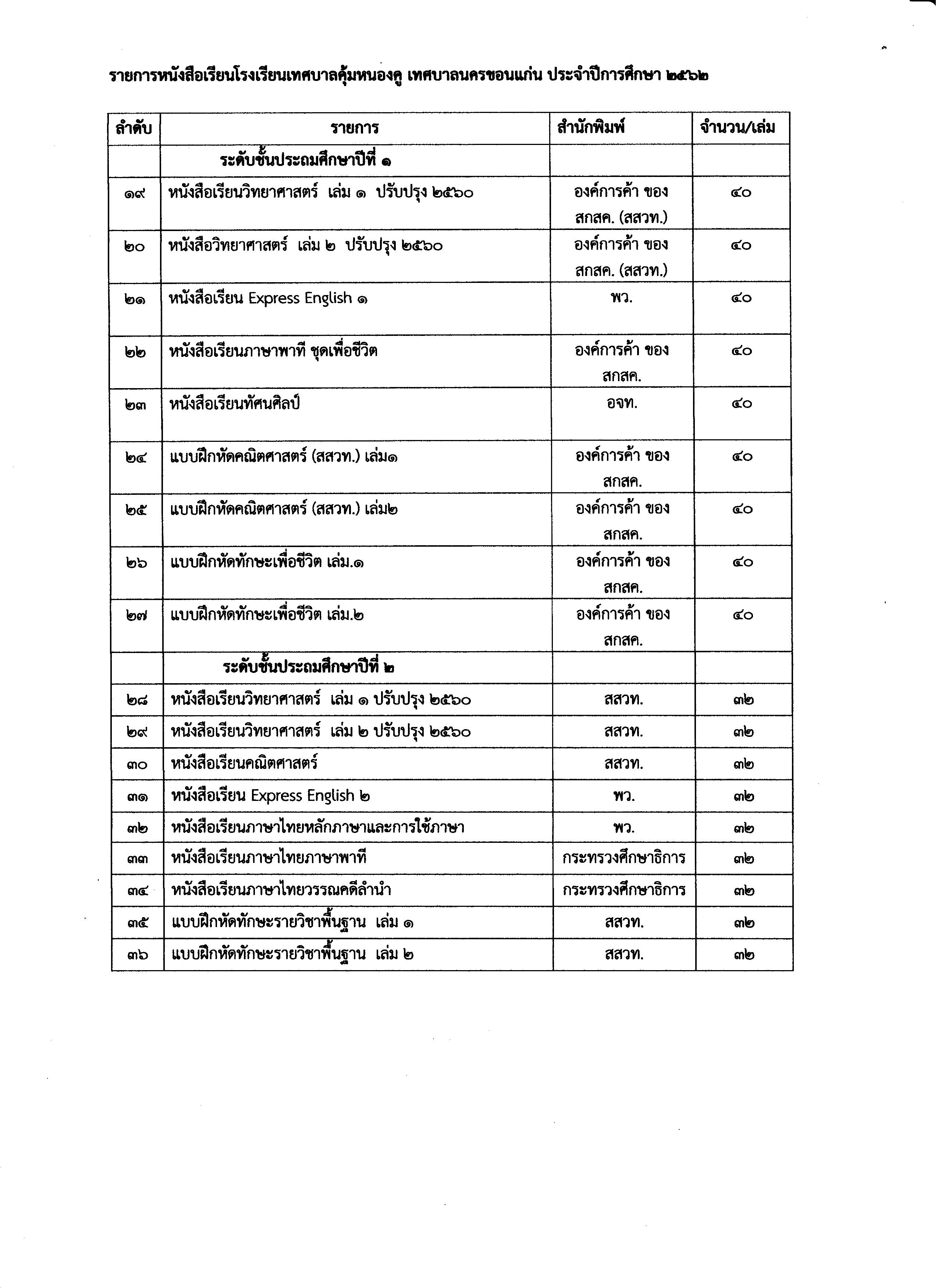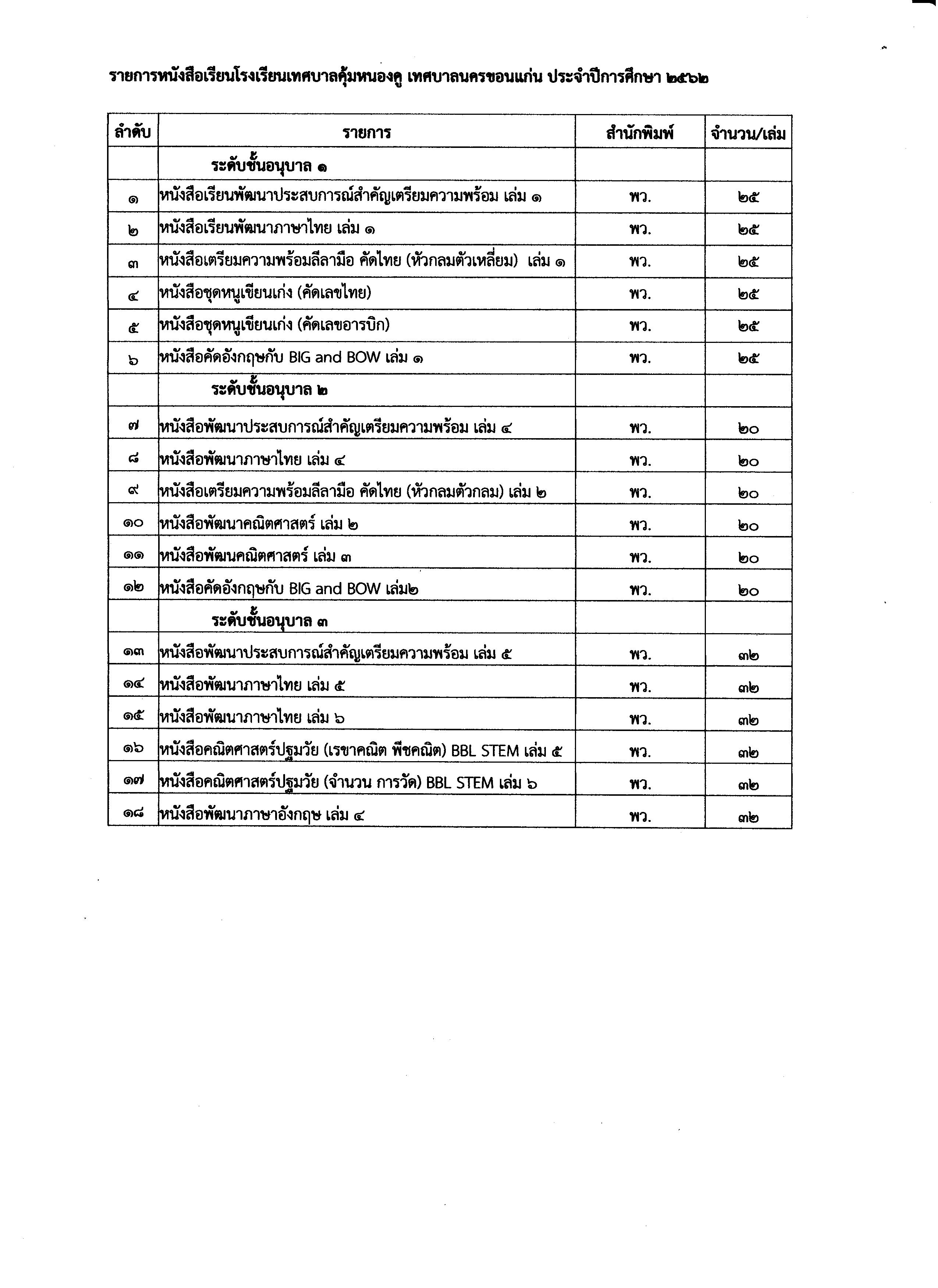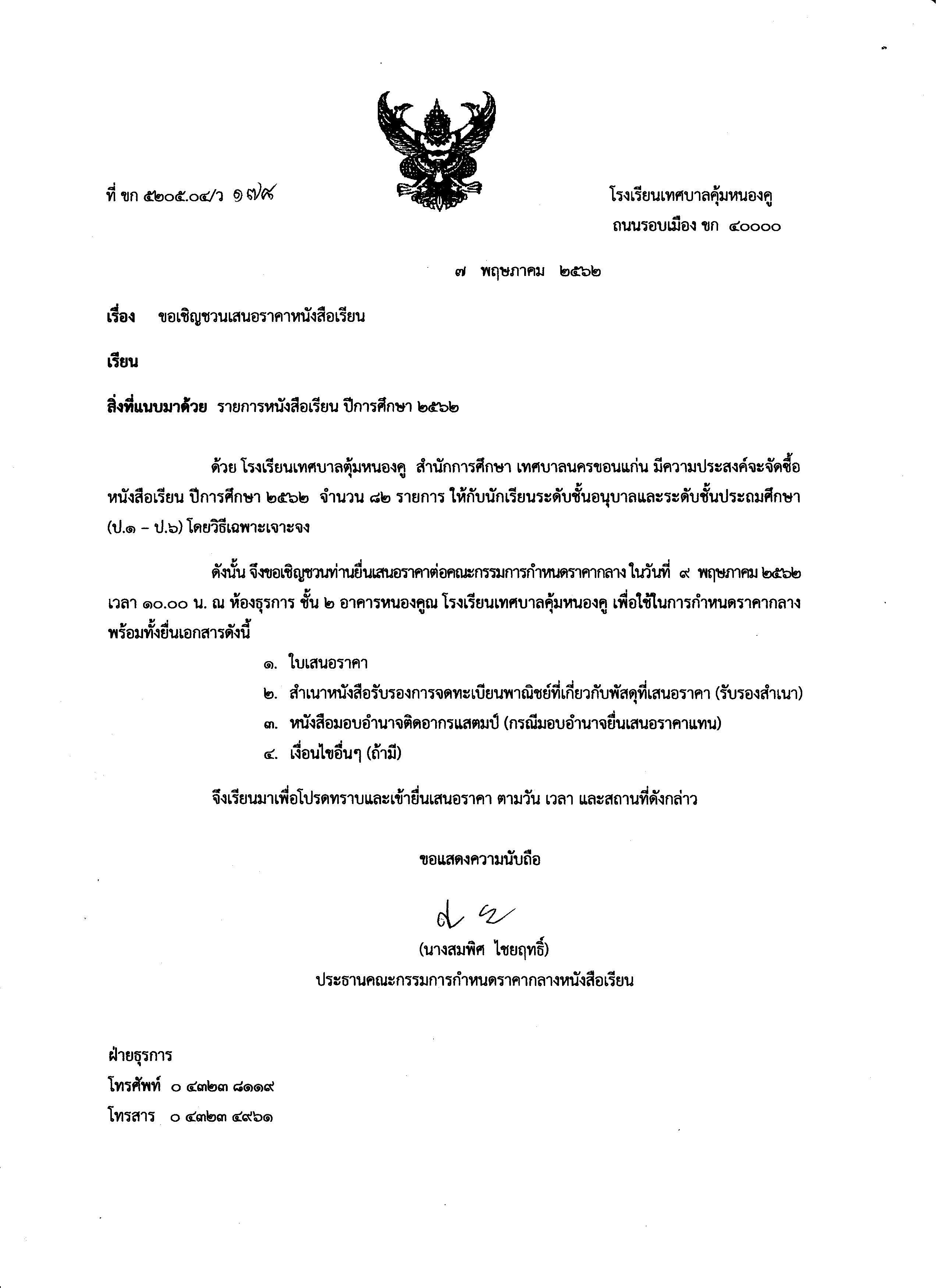 ประกาศเสนอราคาหนังสือเรียนประจำปีการศึกษา 2562
